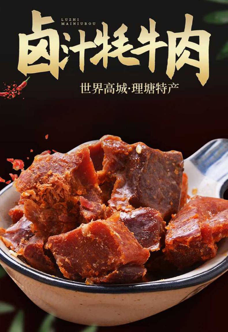 理塘高城鹏飞卤汁牦牛肉干,香辣/卤香150g,甘孜特产牦牛肉干休闲零食